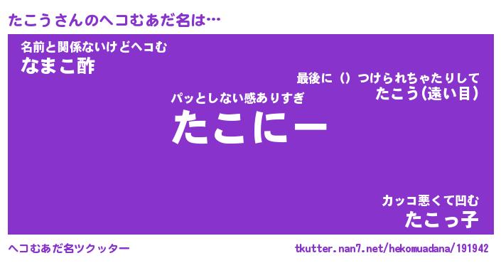| 意味不明あだ名 | 『ペロリンたこう』『たこうフォーエバー』 |