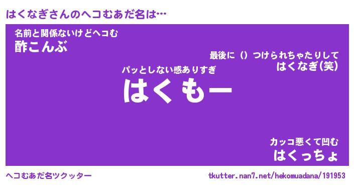 | 意味不明あだ名 | 『ペロリンはくなぎ』『永久保存はくなぎ』 |