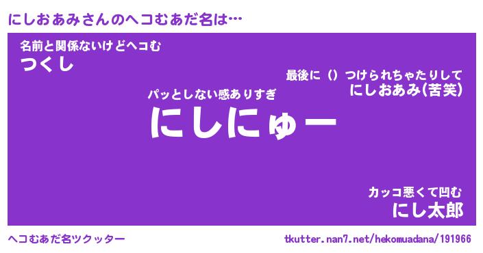 | ファンタジー風あだ名 | 『ニシフェル』『エターナルニシオアミー』 |