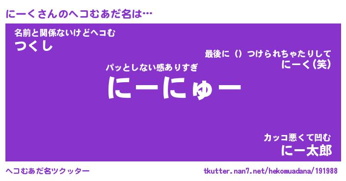 | 男性向けラノベタイトル風あだ名 | 『にーくの憂鬱』 |