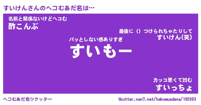 | 意味不明あだ名 | 『ペロリンすいけん』『永久保存すいけん』 |