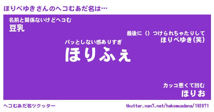 | ファンタジー風あだ名 | 『ホリフェル』『エターナルホリベユキー』 |