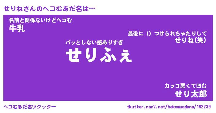 | ファンタジー風あだ名 | 『セリフェル』『エターナルセリネー』 |