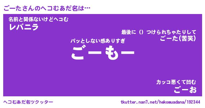 | 意味不明あだ名 | 『ペロリンごーた』『ごーたフォーエバー』 |