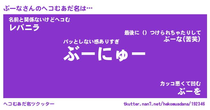 | 胡散臭い通販商品みたいなあだ名 | 『億万長者になれる水晶球…その名も「ぶーな」』 |