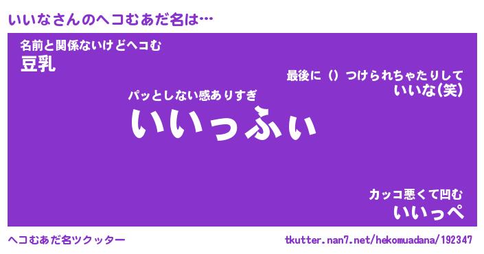 | ファンタジー風あだ名 | 『イイフェル』『エターナルイイナー』 |