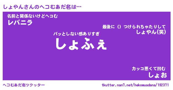 | ファンタジー風あだ名 | 『ショフェル』『エターナルショヤンー』 |
