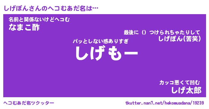 | 意味不明あだ名 | 『ペロリンしげぽん』『永久保存しげぽん』 |