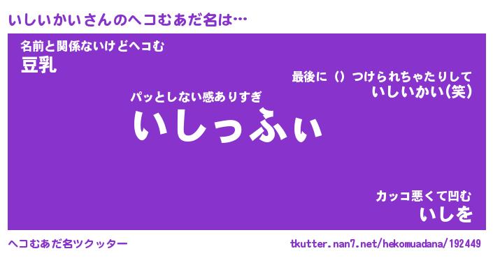 | ファンタジー風あだ名 | 『イシフェル』『エターナルイシイカイー』 |