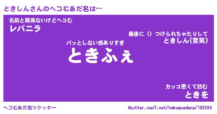 | 意味不明あだ名 | 『ペロリンときしん』『永久保存ときしん』 |