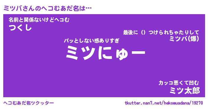 | 意味不明あだ名 | 『ペロリンミツバ』『ミツバフォーエバー』 |