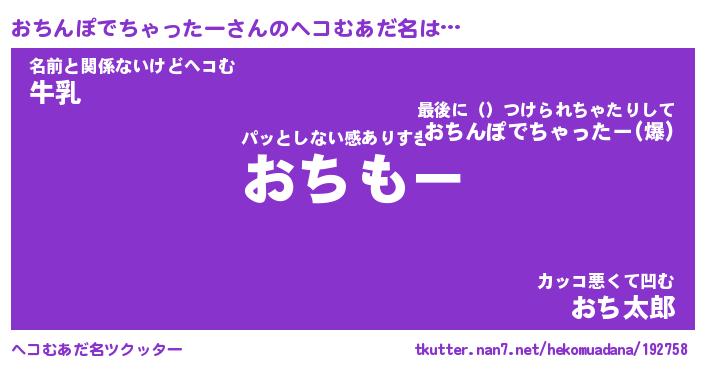 | 意味不明あだ名 | 『ペロリンおちんぽでちゃったー』 |