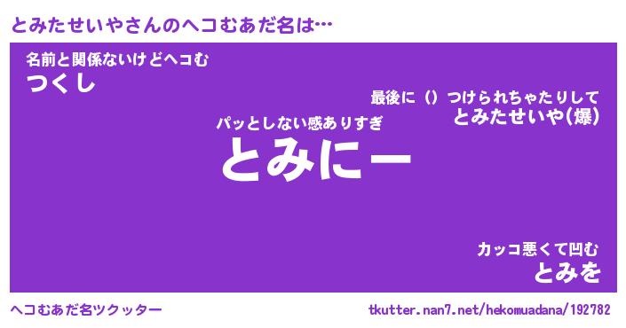 | 男性向けラノベタイトル風あだ名 | 『とみたせいやの憂鬱』 |