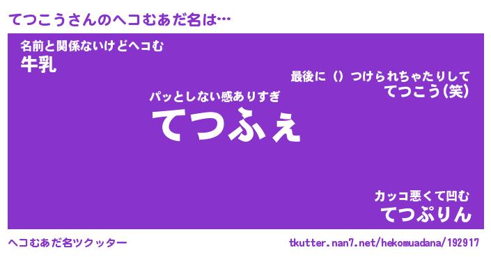 | 男性向けラノベタイトル風あだ名 | 『てつこうの憂鬱』 |