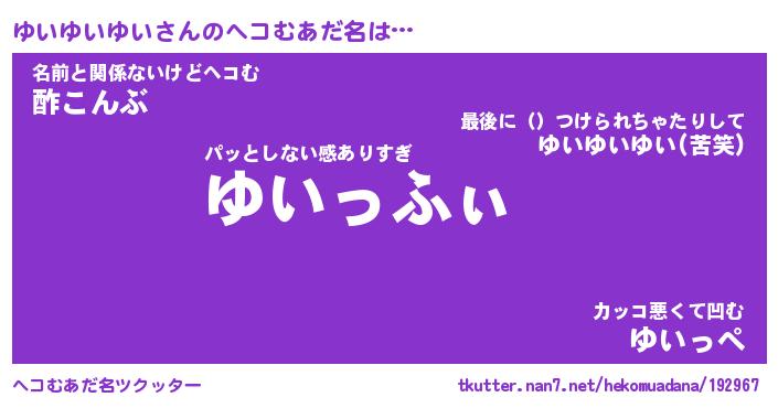 | ピコ太郎風あだ名 | 『ユコ十郎』『ピユ五郎』『ユイ五郎』 |