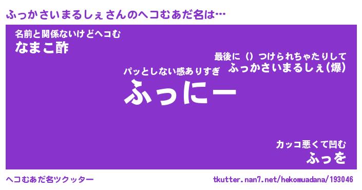 | 欧米人風あだ名 | 『マイケルふっかさいまるしぇ』 |