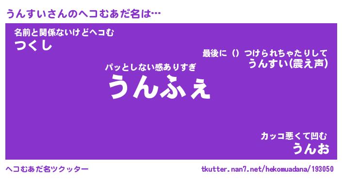 | ファンタジー風あだ名 | 『ウンフェル』『エターナルウンスイー』 |