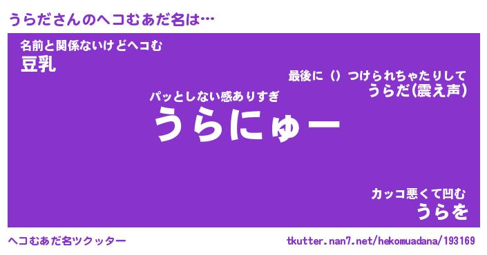 | ヒーロー風カッコイイあだ名 | 『スーパーウラダ』『ウルトラうらだマン』 |