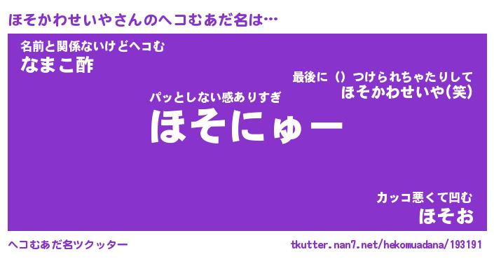 | 胡散臭い通販商品みたいなあだ名 | 『億万長者になれる水晶球…その名も「ほそかわせいや」』 |