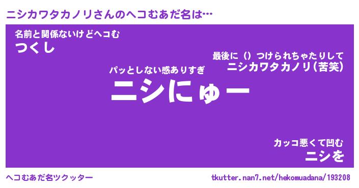 | ポケモン風あだ名 | 『ニシチュウ』『ニシカダネ』 |