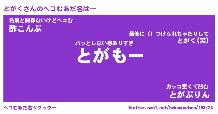 | 意味不明あだ名 | 『ペロリンとがく』『とがくフォーエバー』 |