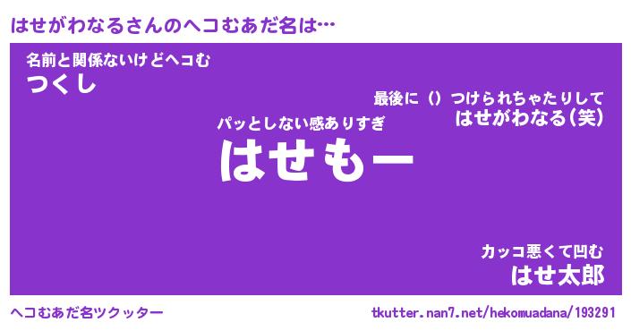 | 男性向けラノベタイトル風あだ名 | 『ハセガワナルアートオンライン』 |