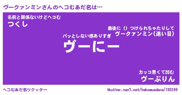 | 男性向けラノベタイトル風あだ名 | 『ヴークァンミンの憂鬱』 |