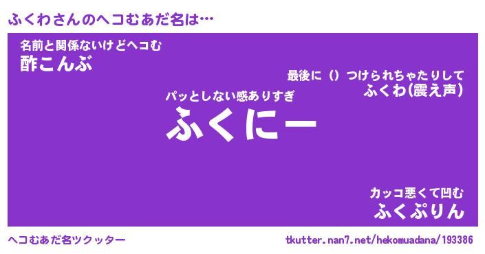 | ファンタジー風あだ名 | 『フクフェル』『エターナルフクワー』 |