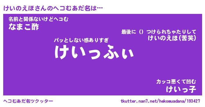 | ファンタジー風あだ名 | 『ケイフェル』『エターナルケイノエホー』 |