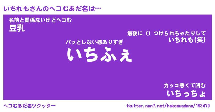 | ファンタジー風あだ名 | 『イチフェル』『エターナルイチレモー』 |
