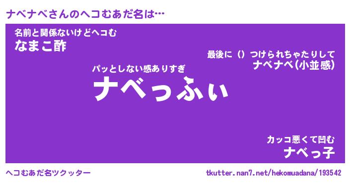 | 自動車の名前っぽいあだ名 | 『ナベティマ』『ナクア』『ナント』 |
