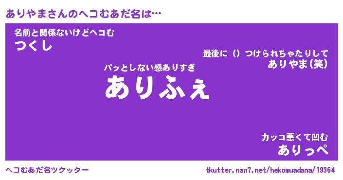 | ファンタジー風あだ名 | 『アリフェル』『エターナルアリヤマー』 |