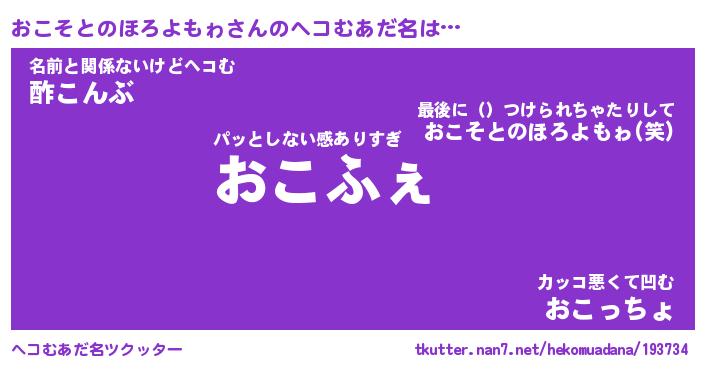 | 男性向けラノベタイトル風あだ名 | 『おこそとのほろよもゎの憂鬱』 |
