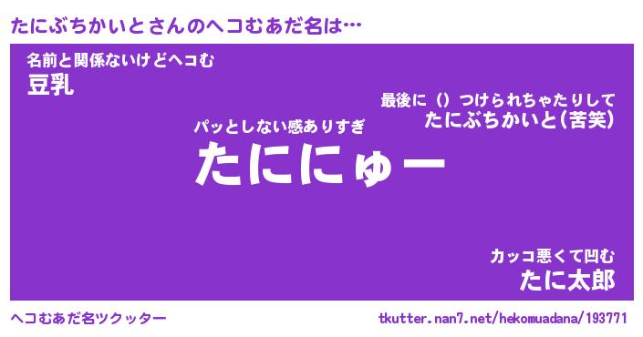 | 意味不明あだ名 | 『ペロリンたにぶちかいと』 |