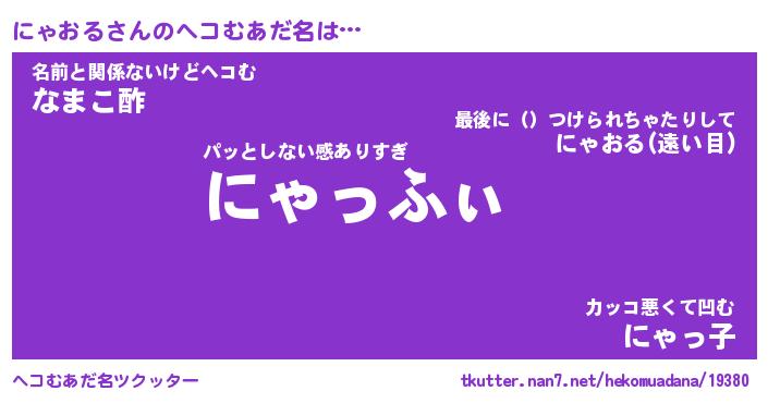 | 意味不明あだ名 | 『ペロリンにゃおる』『永久保存にゃおる』 |