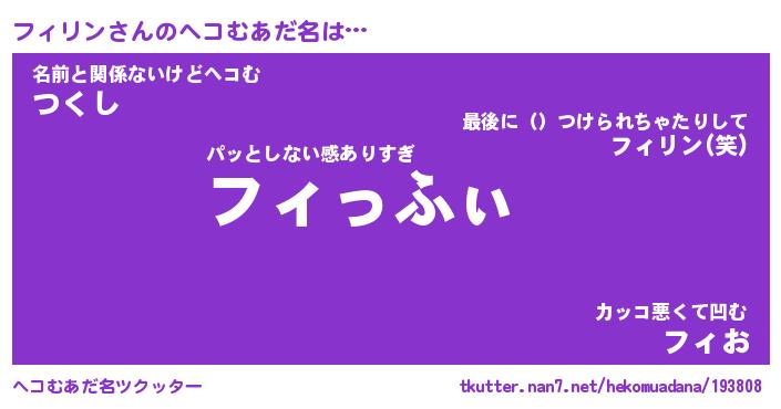 | 男性向けラノベタイトル風あだ名 | 『フィリンの憂鬱』 |