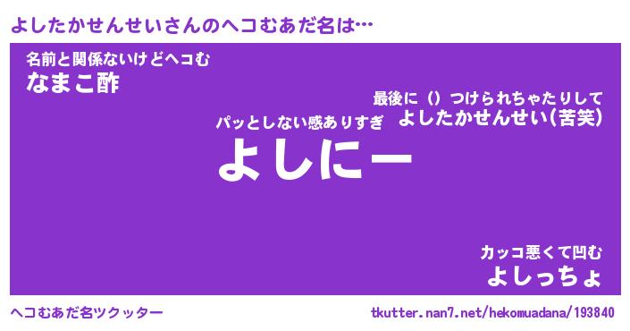 | ピコ太郎風あだ名 | 『ヨコ太郎』『ピヨ三郎』『ヨシ六郎』 |