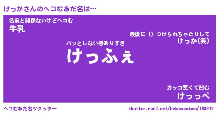 ポケモン風あだ名 | 『ケッチュウ』『ケッカダネ』 |