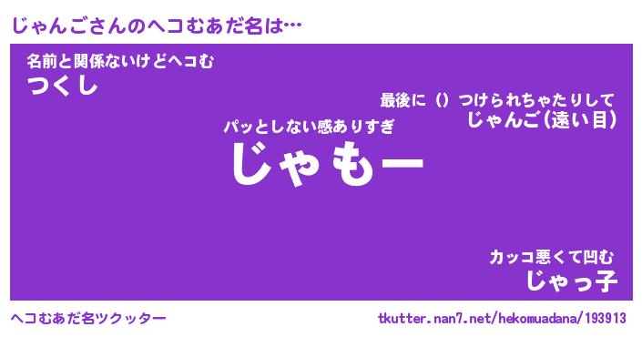 | 欧米人風あだ名 | 『マイケルじゃんご』『ウサインじゃんご』 |