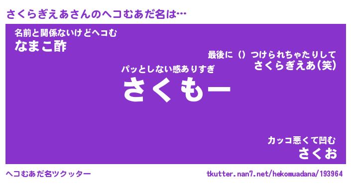 | 意味不明あだ名 | 『ペロリンさくらぎえあ』 |