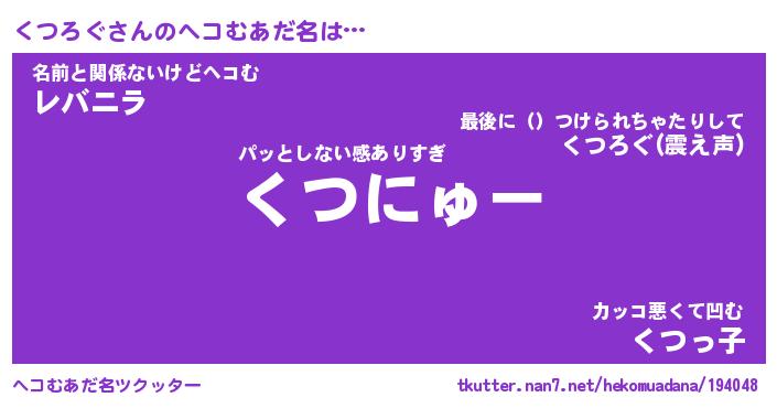 | ファンタジー風あだ名 | 『クツフェル』『エターナルクツログー』 |
