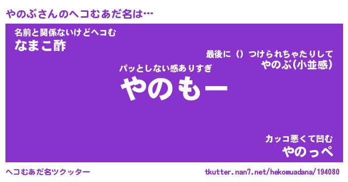 | ファンタジー風あだ名 | 『ヤノフェル』『エターナルヤノブー』 |