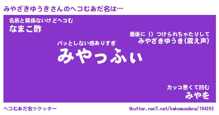 | 肩書あだ名 | 『みやざきゆうき御曹司』 |