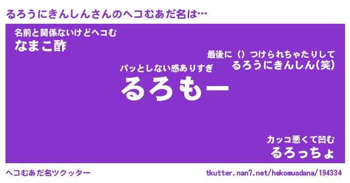 | 意味不明あだ名 | 『ペロリンるろうにきんしん』 |