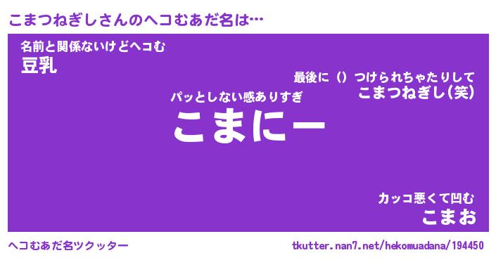 | ポケモン風あだ名 | 『コマチュウ』『コマツダネ』 |
