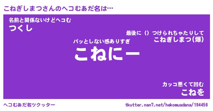 | 2回繰り返すあだ名 | 『こねこね』『ここねね』『いじいじ』 |
