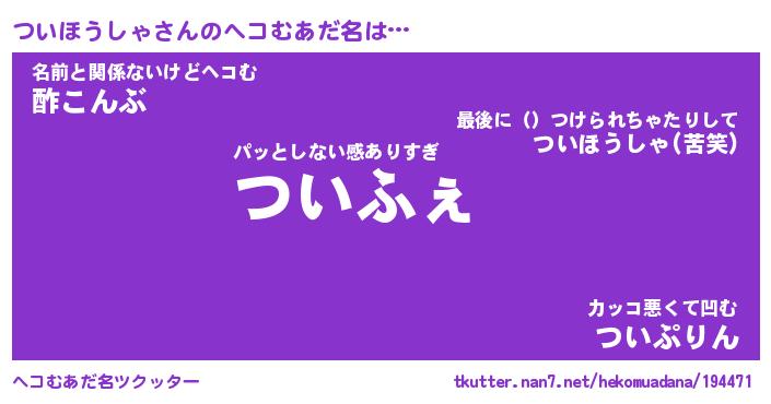 | ポケモン風あだ名 | 『ツイチュウ』『ツイホダネ』 |