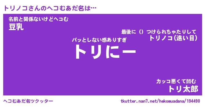 | 意味不明あだ名 | 『ペロリントリノコ』『永久保存トリノコ』 |