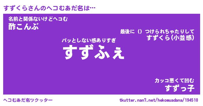 | 意味不明あだ名 | 『ペロリンすずくら』『永久保存すずくら』 |