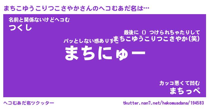 | 恥ずかしいあだ名 | 『プリティーまちこゆうこりつこさやか』 |